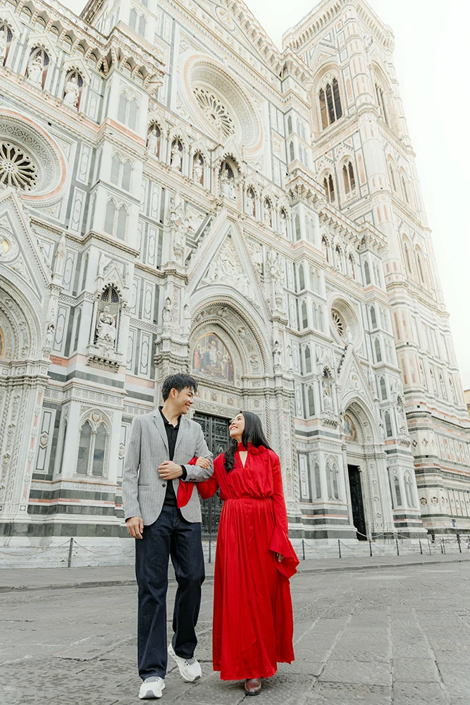 Imagine walking through the historic heart of Florence, stopping for photos in front of the majestic Duomo, along the scenic Ponte Vecchio, or in the lush Boboli Gardens. These stunning locations offer the perfect backdrop for elegant and timeless couple portraits. Whether you prefer candid moments of affection or beautifully posed shots, I work closely with you to ensure that the photos reflect your unique style and connection.